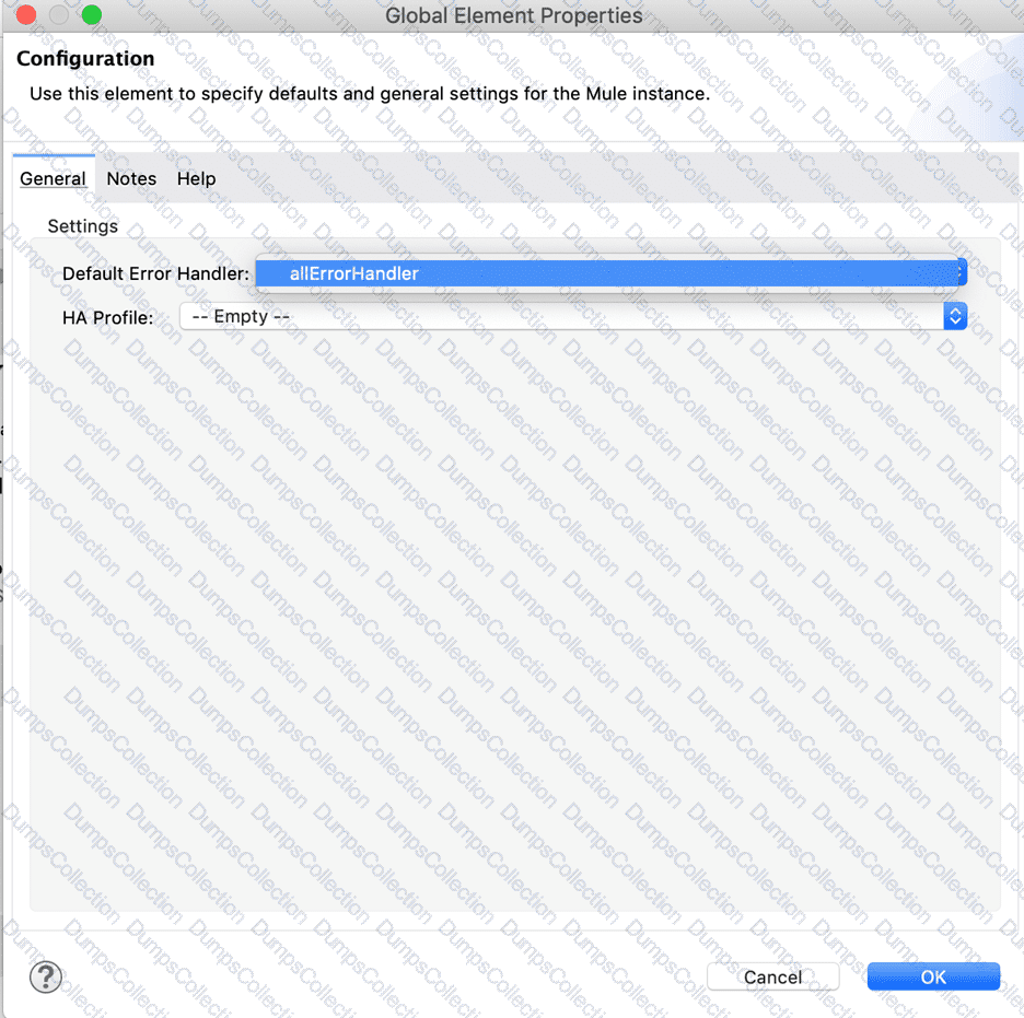 A Mule application contains aglobal error handler configured to catch any errors.