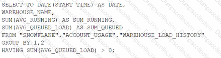 Which query will identify the specific days and virtual warehouses that would benefit from a multi-cluster warehouse to improve the performance of a particular workload?