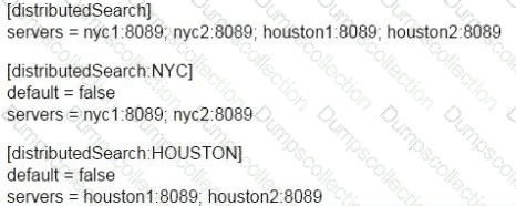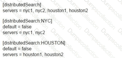 How would you configure your distsearch conf to allow you to run the search below? sourcetype=access_combined status=200 action=purchase splunk_setver_group=HOUSTON