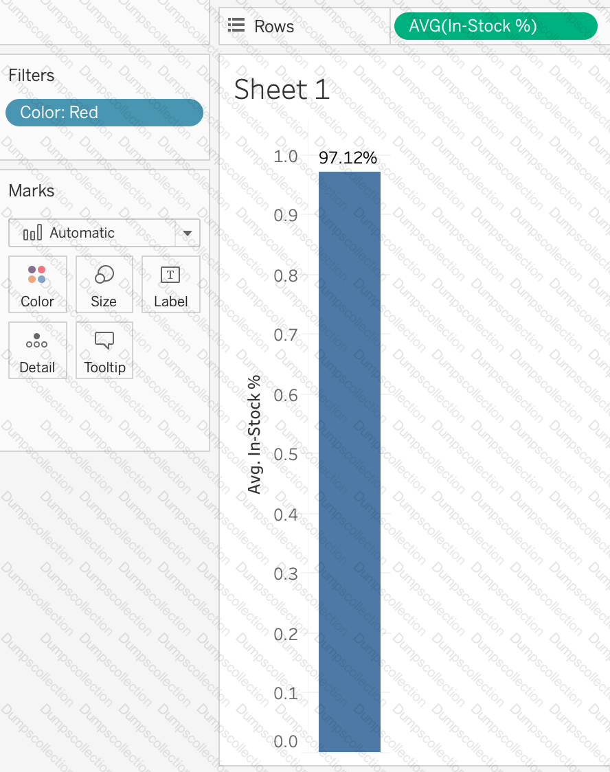 Using the Geo Data table, create a Bar chart showing the In-Stock percentage for each Color. What is the Average In-Stock percentage for the Color Red? Present your answer correctly upto 2 decimal places.