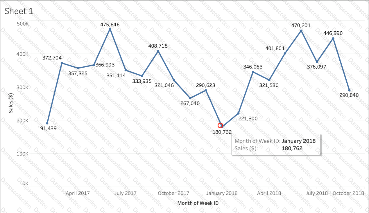 Using the Time Series Table, create a line chart to show Sales over time. Which Month and Year witnessed the lowest Sales?