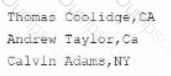 You have a tMap component configured with a single input row1and three outputs: CA, NY, Rejects. The input row1 consists of two columns. Name and State, containing the following data: