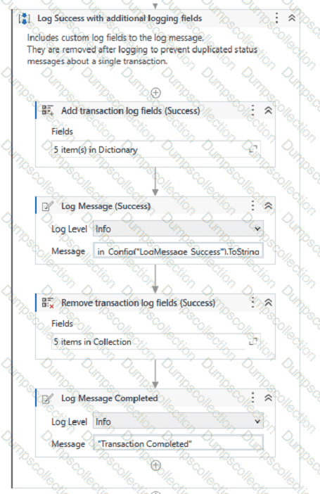 A developer is using the REFramework template to automate a process. In "SetTransactionStatus" file, there is the following sequence of activities, where the last Log Message activity was added by