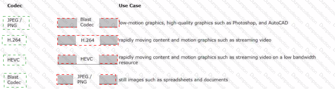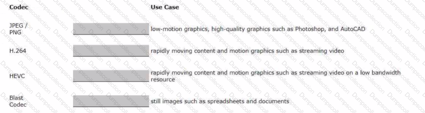Drag and drop the codecs supported by Blast on the left to the appropriate use case on the right.