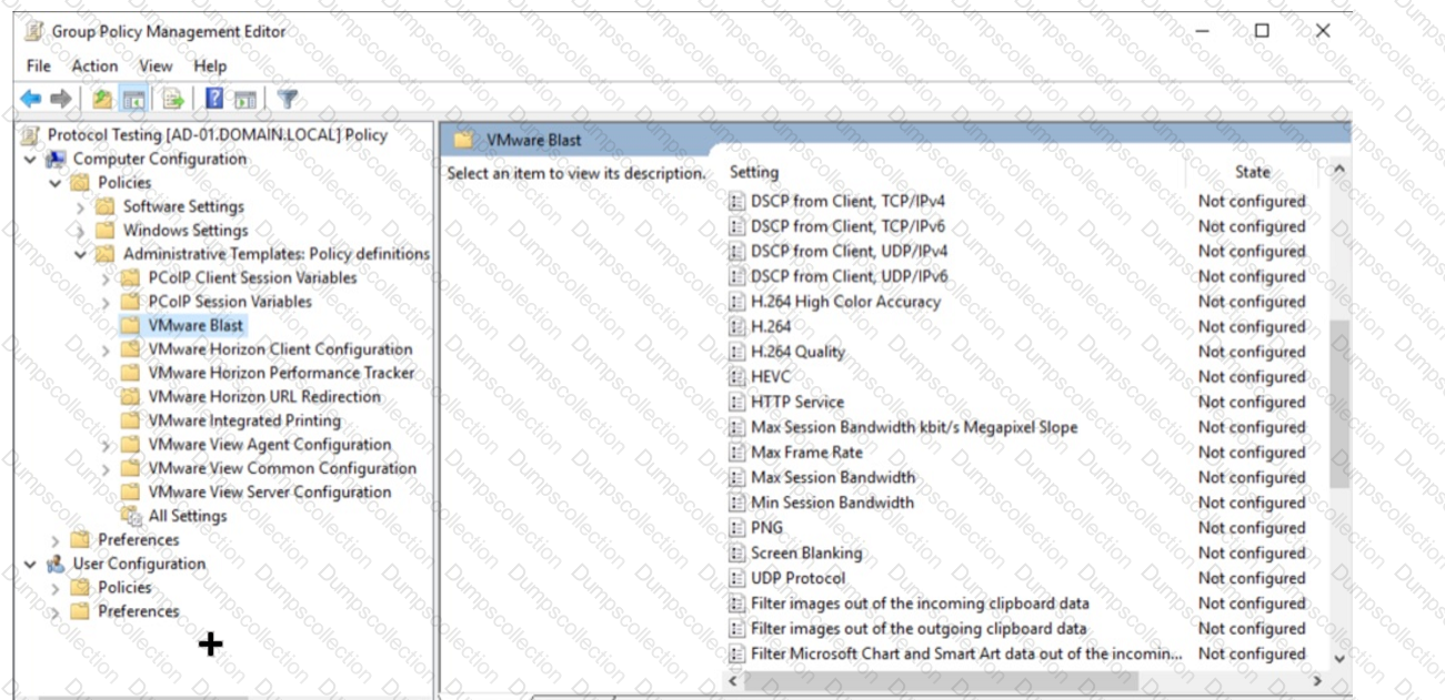 In the Group Policy Management Editor window, mark the correct VMware Blast setting to be configured by clicking on it.