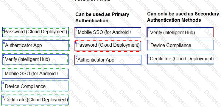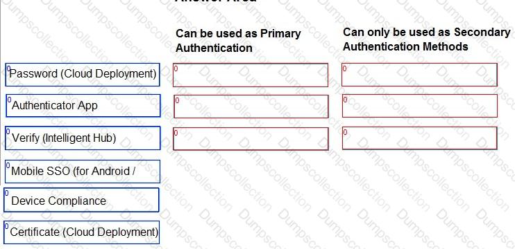 In Workspace ONE Access, some authentication methods can best be used as Primary Authentication, while others can only be used as Secondary Authentication.