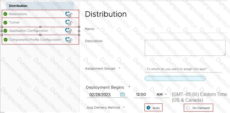 Where would an administrator click to add and send configuration settings as part of the Application Assignment? Mark your answer by clicking on it in the image.