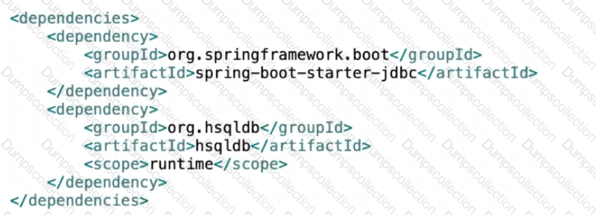Which two statements are correct regarding auto-configuration of DataSource and JdbcTemplate beans given a Spring Boot application with only these two dependencies? (Choose two.)