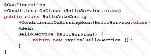 Which two statements are correct regarding the HelloAutoConfig auto-configuration class when it is specified in the META-INF/spring.factories file? (Choose two.)