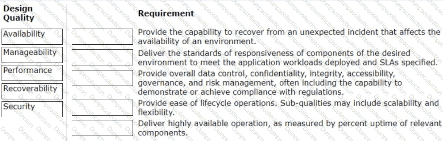 Drag and drop each Design Quality from the left into the box corresponding to the correct requirement on the right.