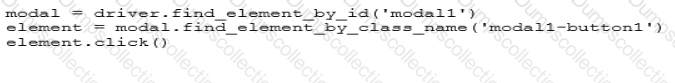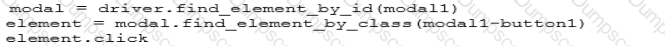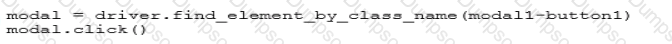 Given a modal dialog with an ID = "modal1" and a button in the modal with a class name = "modal1-butlon1", which line(s) of code will click on the modal button?